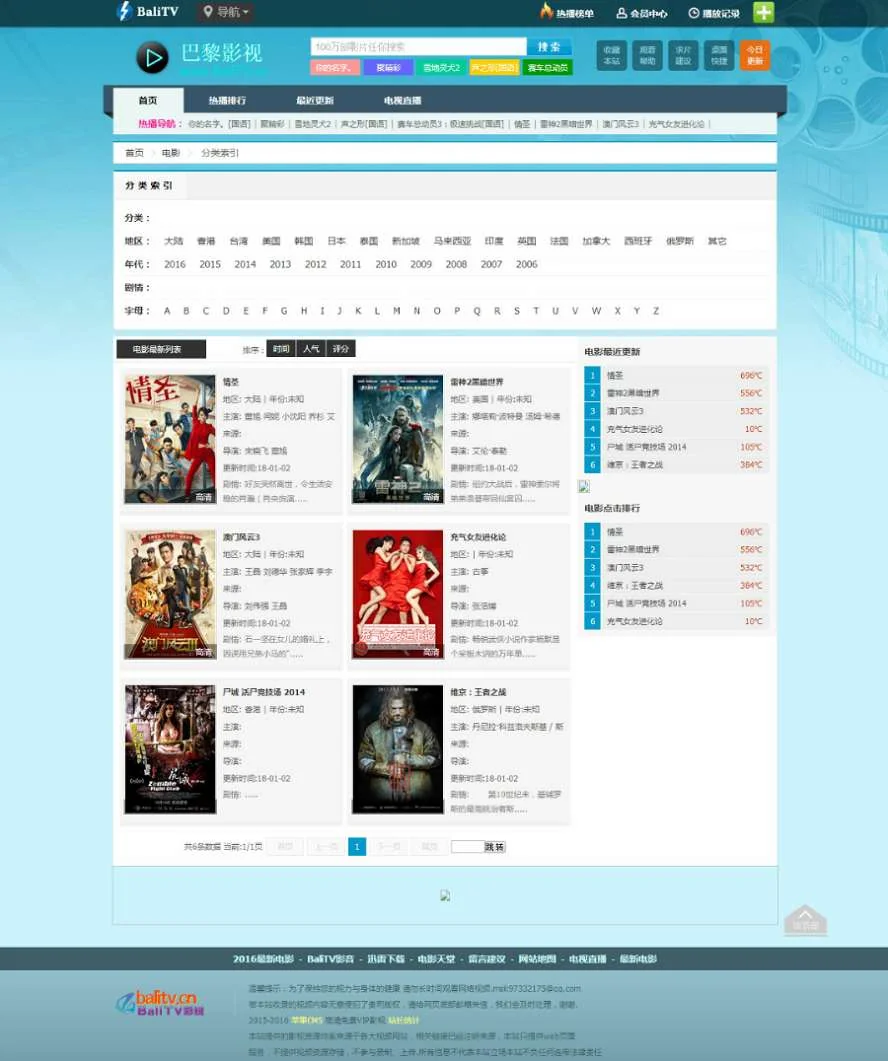 苹果cmsv8巴黎影视网站源码 admin 编辑 商品价格 VIP免费下载 联系客服 立即下载 虚拟商品,自动发货 7 天无忧退款 源码介绍苹果cmsv8巴黎影视网站源码蓝色简洁界面设计,兼并电视直播主题风格非常美观的一款影视网站网站截图