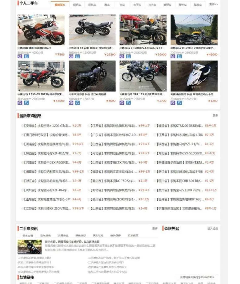 帝国CMS内核二手摩托车汽车交易网站源码 admin 编辑 商品价格 VIP免费下载 联系客服 立即下载 虚拟商品,自动发货 7 天无忧退款 源码介绍此源码在安装后恢复数据时会出现问题,网上所有渠道此源码均是如此,请小白不要单独购买,高手随意,小白请等待修复版;帝国CMS内核二手摩托车汽车交易网站源码下载这是一款二手摩托车汽车交易平台源码,个人、商家都可发布求购或者出售的信息,商家还有店铺首页,功能, ~ 1完整,帝国cms内核制作,可扩展性强,界面大气简洁,很适合做二手车、信息发布门户类站点使用网站截图