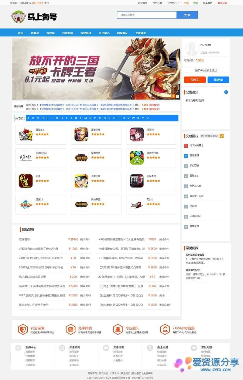 码上有号游戏帐号游戏币手游号交易平台账号出售网站源码 admin 编辑 商品价格 VIP免费下载 联系客服 立即下载 虚拟商品,自动发货 7 天无忧退款 码上有号游戏帐号游戏币手游号交易平台账号出售网站源码程序主要为游戏账号、游戏币出售的网站平台源码,手机端自适应,程序内附详细安装说明,有需要的请自行下载安装。