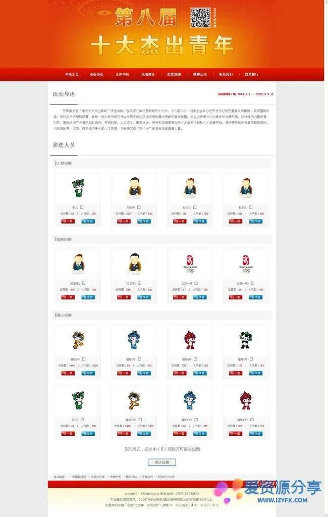宁志投票评选网站管理系统支持内容: