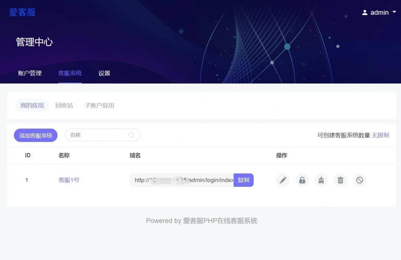 客服数量不限,每个客服有独立管理后台和账户密码。