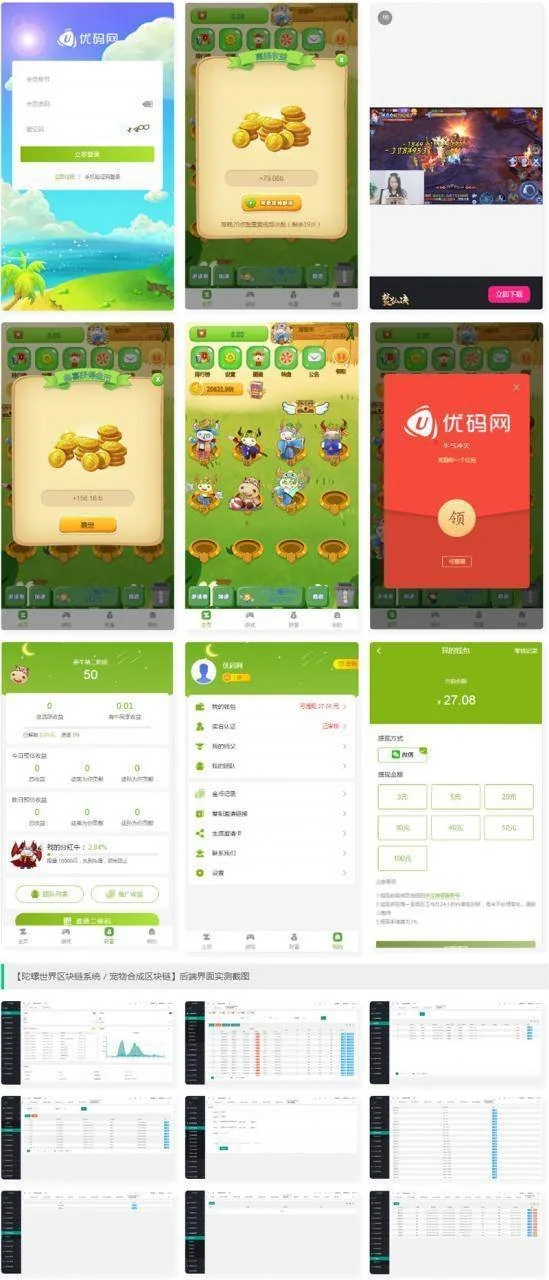 陀螺世界区块链系统是一款通过养殖升级的娱乐游戏软件,主要是通过玩游戏做任务领分红。通过邀请好友得活跃收益; 3 % ^ V l + B提成,享受他们的分红收益。源码0 C T { @ , T F a是Thinkphp内核开发,开源E ^ w n B不授权,包括完整后台、前端和数据库。带宠物合成、自动挂机、金币系统等功能。