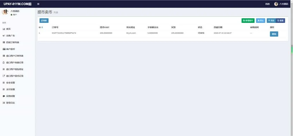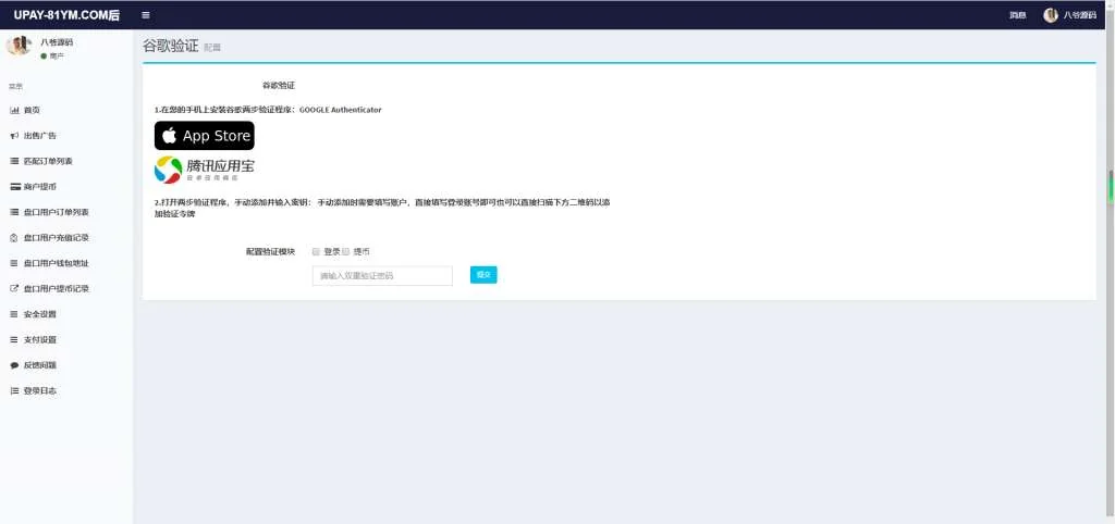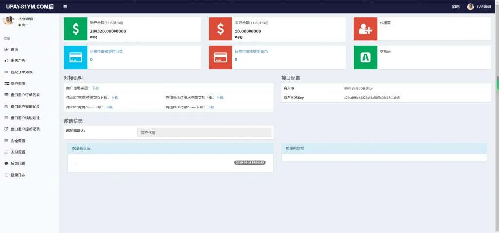 A721 【USDT支付】upay数字火币支付数字货币承兑系统/支持ERC20 OMNI/代理商/第三方支付接口 admin 编辑 商品价格 VIP免费下载 联系客服 立即下载 虚拟商品,自动发货 7 天无忧退款 安装说明服务器系统:Linux + Centos7.x + 宝塔 测试环境:Nginx1.16 + PHP7.2 + MySQL5.6 数据库配置文件:/application/database.php 后台地址:/admin/login/index?urlkey=123456 后台用户:admin 后台密码:www.qilinyuanma.com前台截图 商户后台 总后台