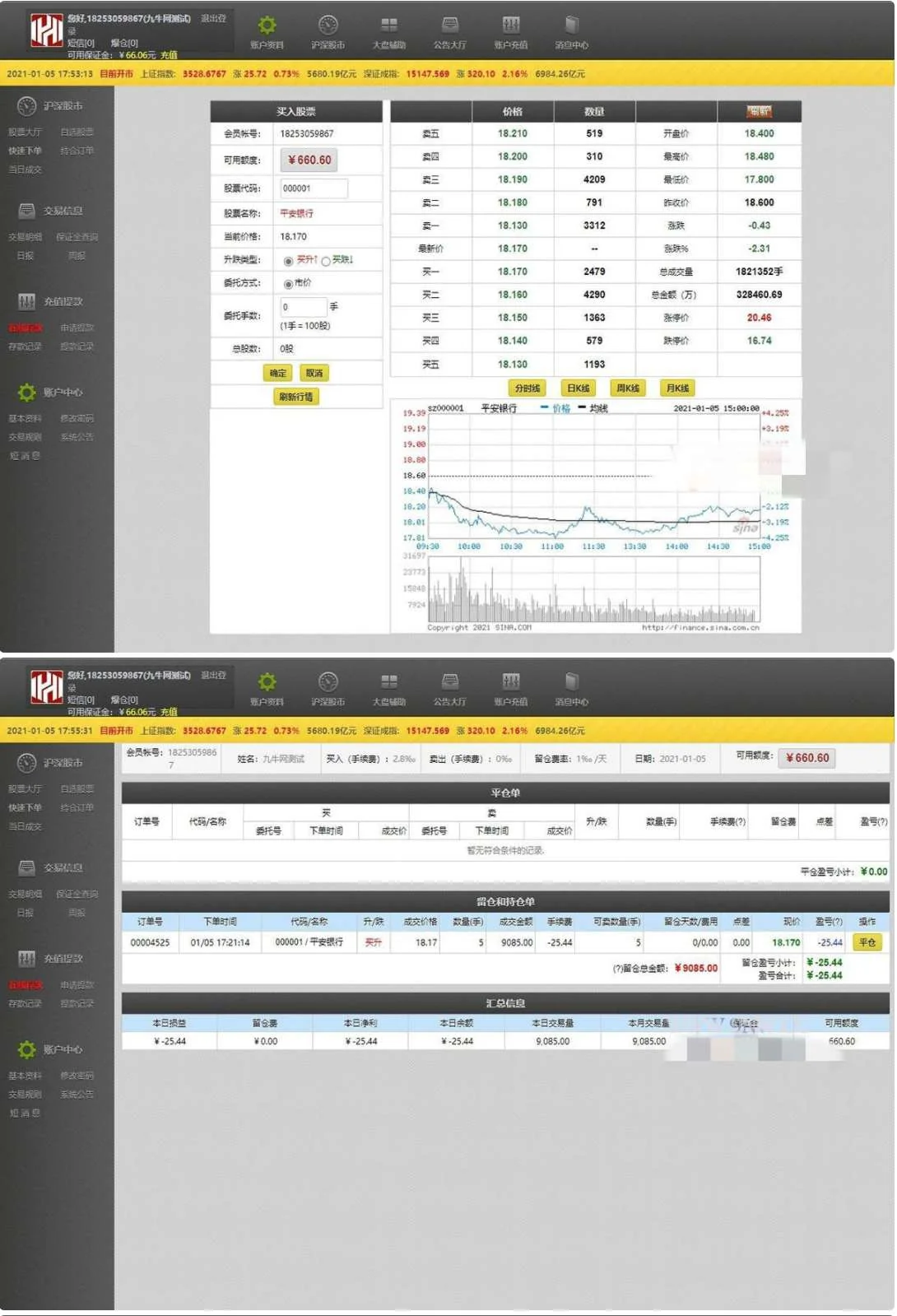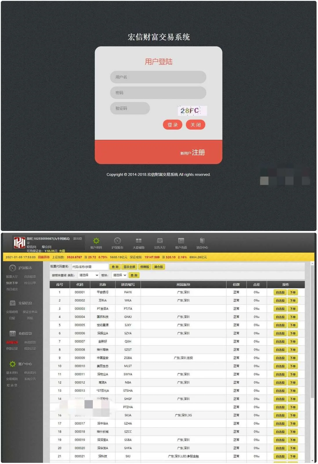 【T+0】PHP股票证券线上配资融资融券模拟交易、模拟盘平台系统源码 admin 编辑 商品价格 VIP免费下载 联系客服 立即下载 虚拟商品,自动发货 7 天无忧退款 php+mysql开发的一款股票证券配资系统源码, 代码全开源支持二次开发, 手机端可打包app。pc端可打包成软件,总后台,代理端,手机端, 电脑端均程序独立数据同步方便管理 行情是实时的,对接的新浪大盘数据,pc端支持调用同花顺大盘数据。 模拟交易程序,禁止用于一切非法行为。使用用途仅限于测试、实验、研究为目的, 禁止用于一切商业运营, 本团队不承担使用者在使用过程中的任何违法行为负责。 pc端截图
