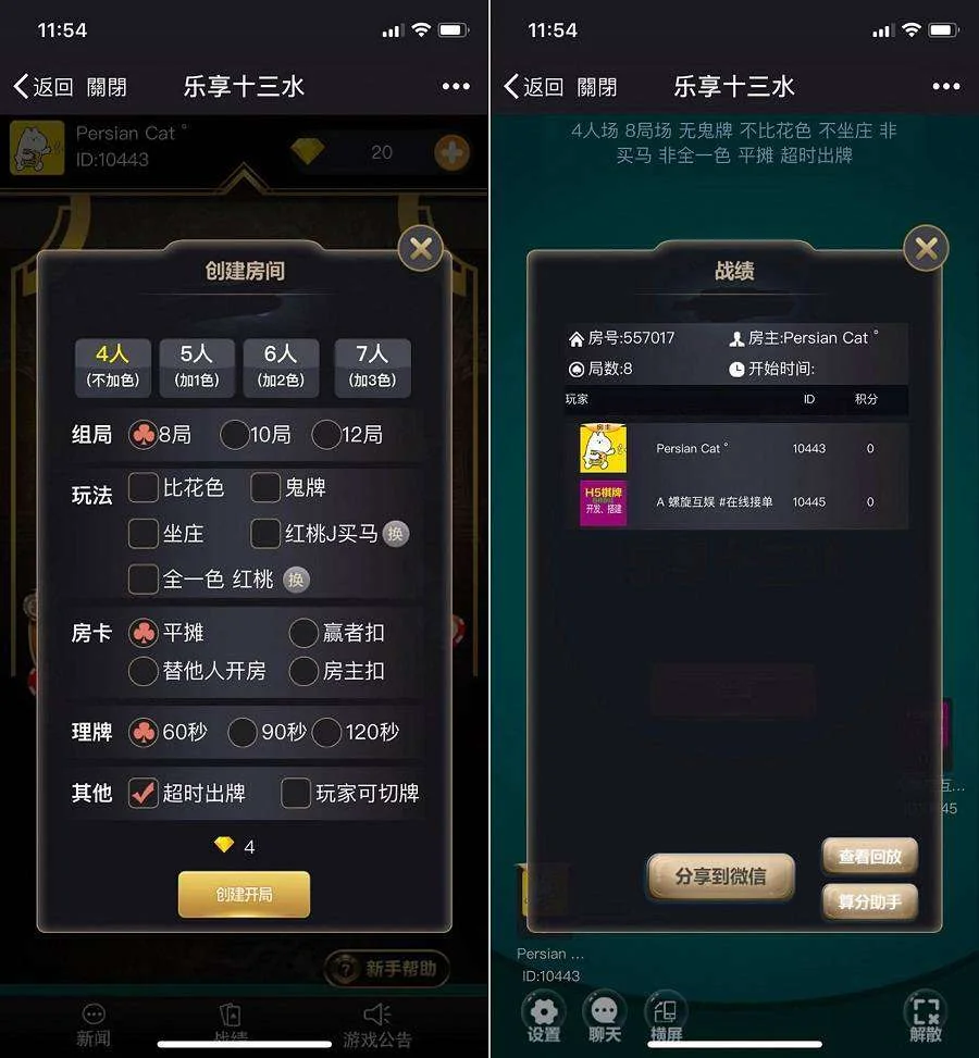 乐享十三水前台采用Thinkphp框架, 后台处理采用note.js,游戏支持同桌4/5/6/7人,福建地方玩法,网站后台可以控制玩家的牌,完整全套源码,可[ N I以自行二次开发。
