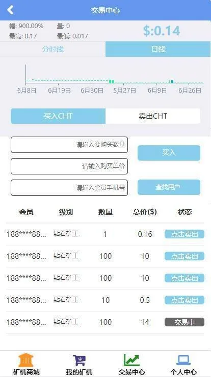 白铁矿工:直推:0人 团队总人数:1人 交易手续费:20% 可拥有算力:80G 赠送矿机:mini矿机*3