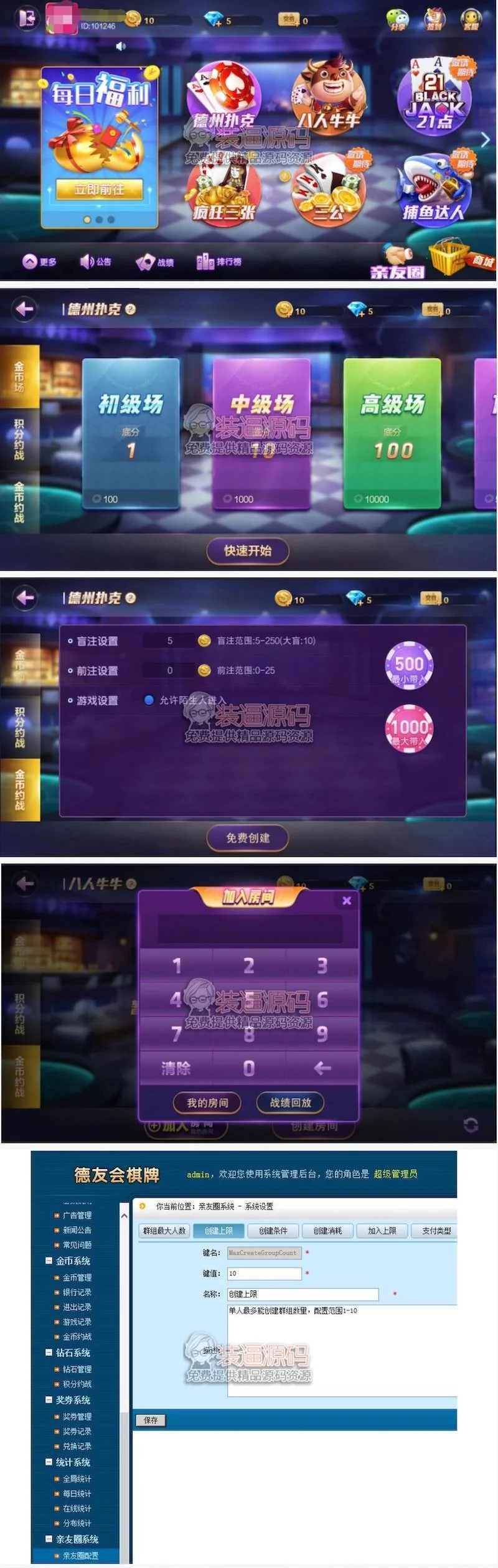德友会娱乐游戏源码+网狐旗舰版内核开发房卡娱乐下载完整源码[架设简单] admin 编辑 商品价格 VIP免费下载 联系客服 立即下载 虚拟商品,自动发货 7 天无忧退款 源码描述:网狐旗舰版源码 德友会游戏金币场-房卡德友会程序由网狐旗舰版二次开发的源码截图: